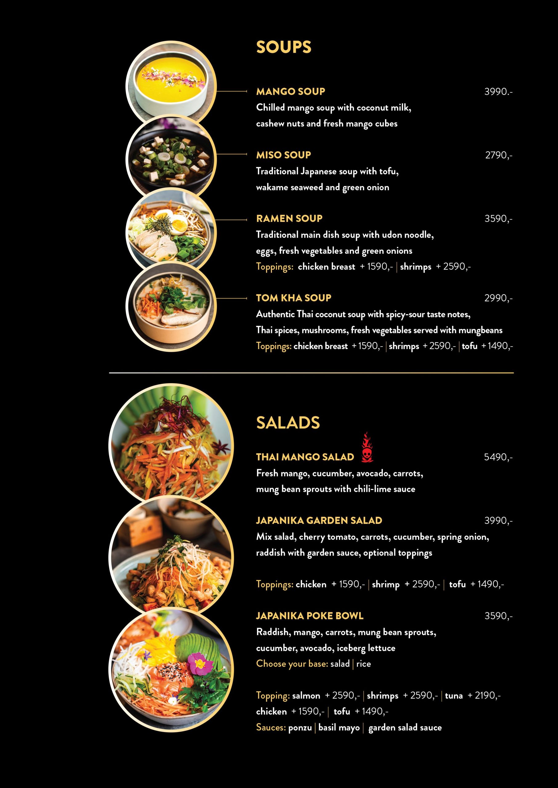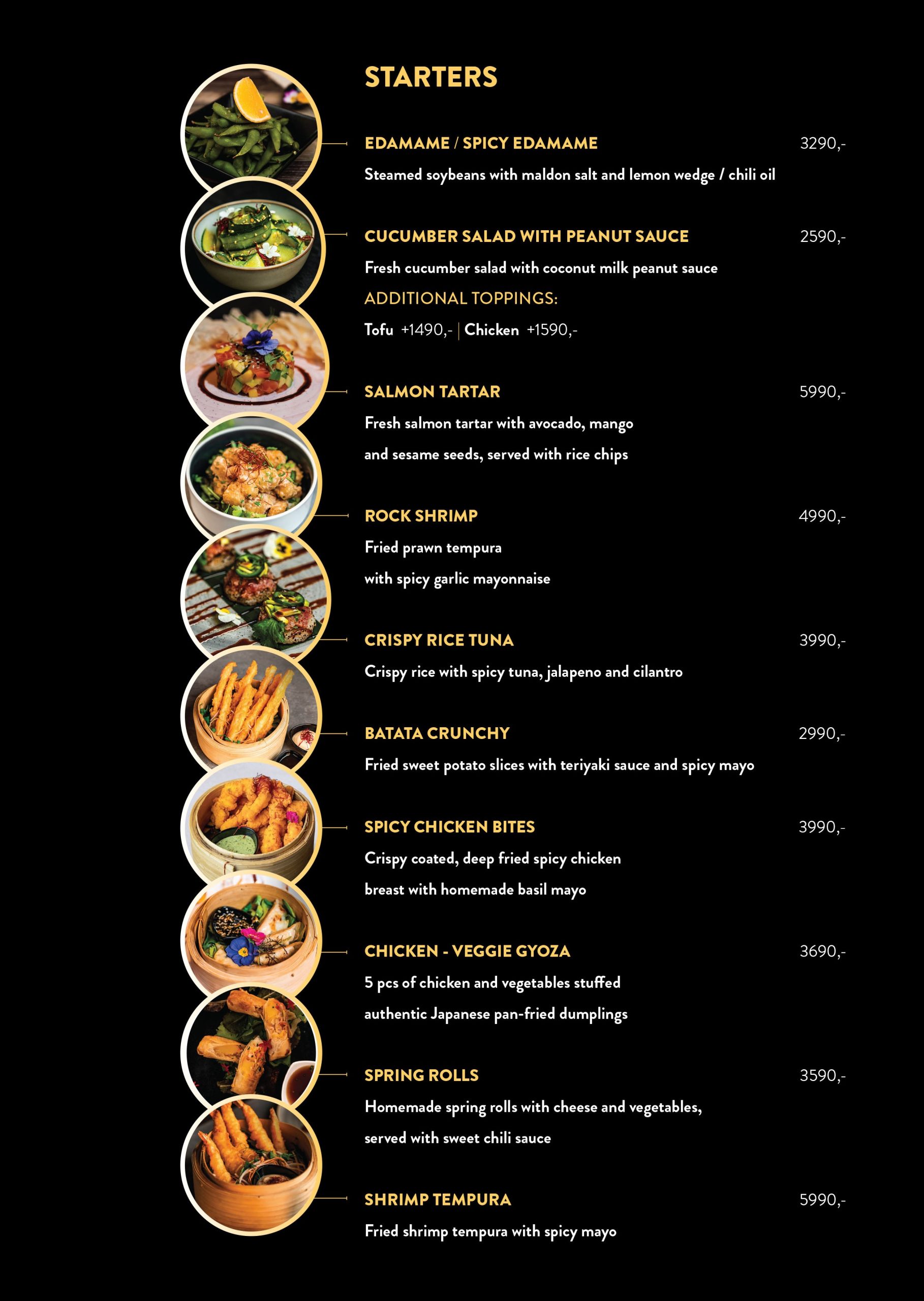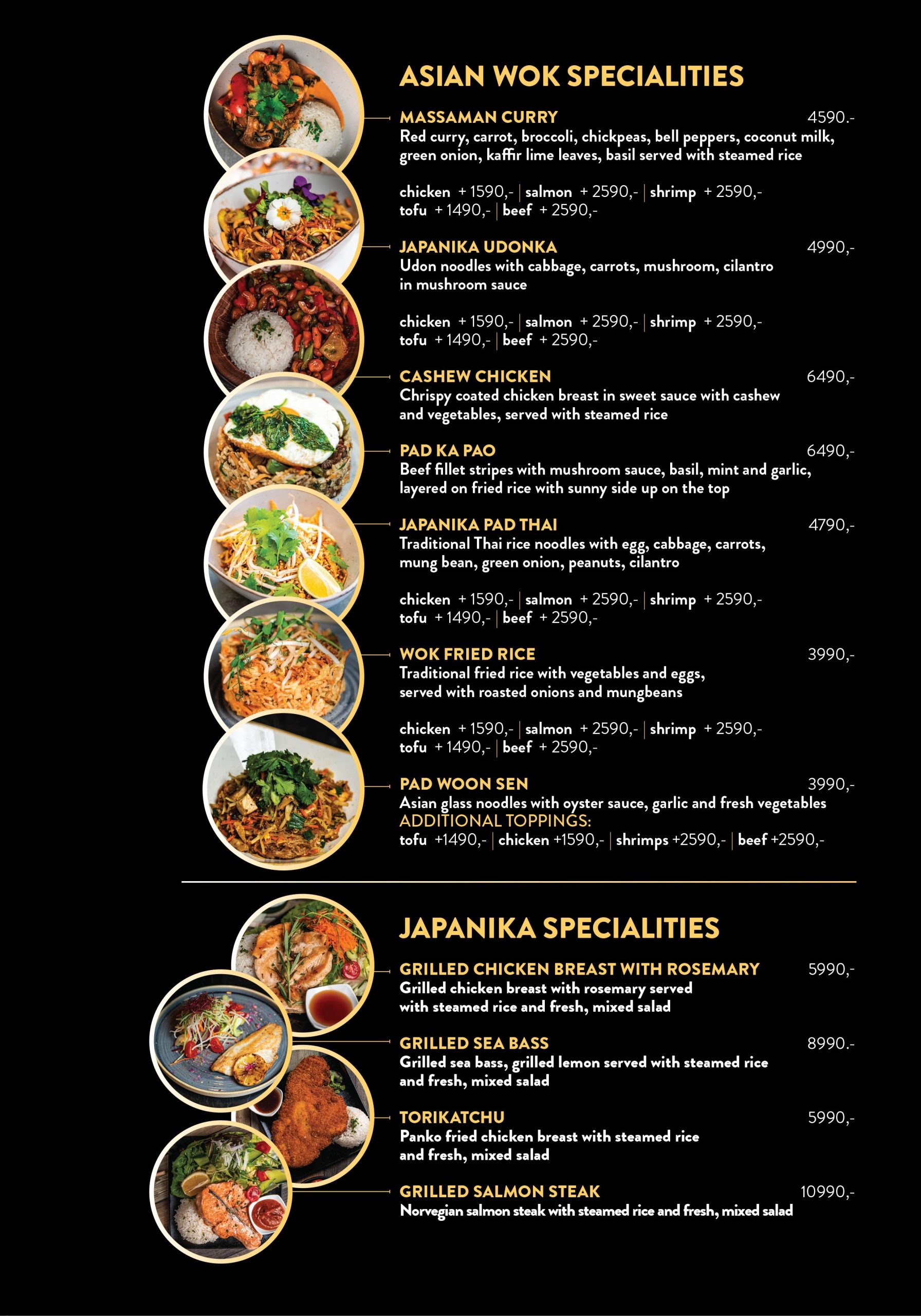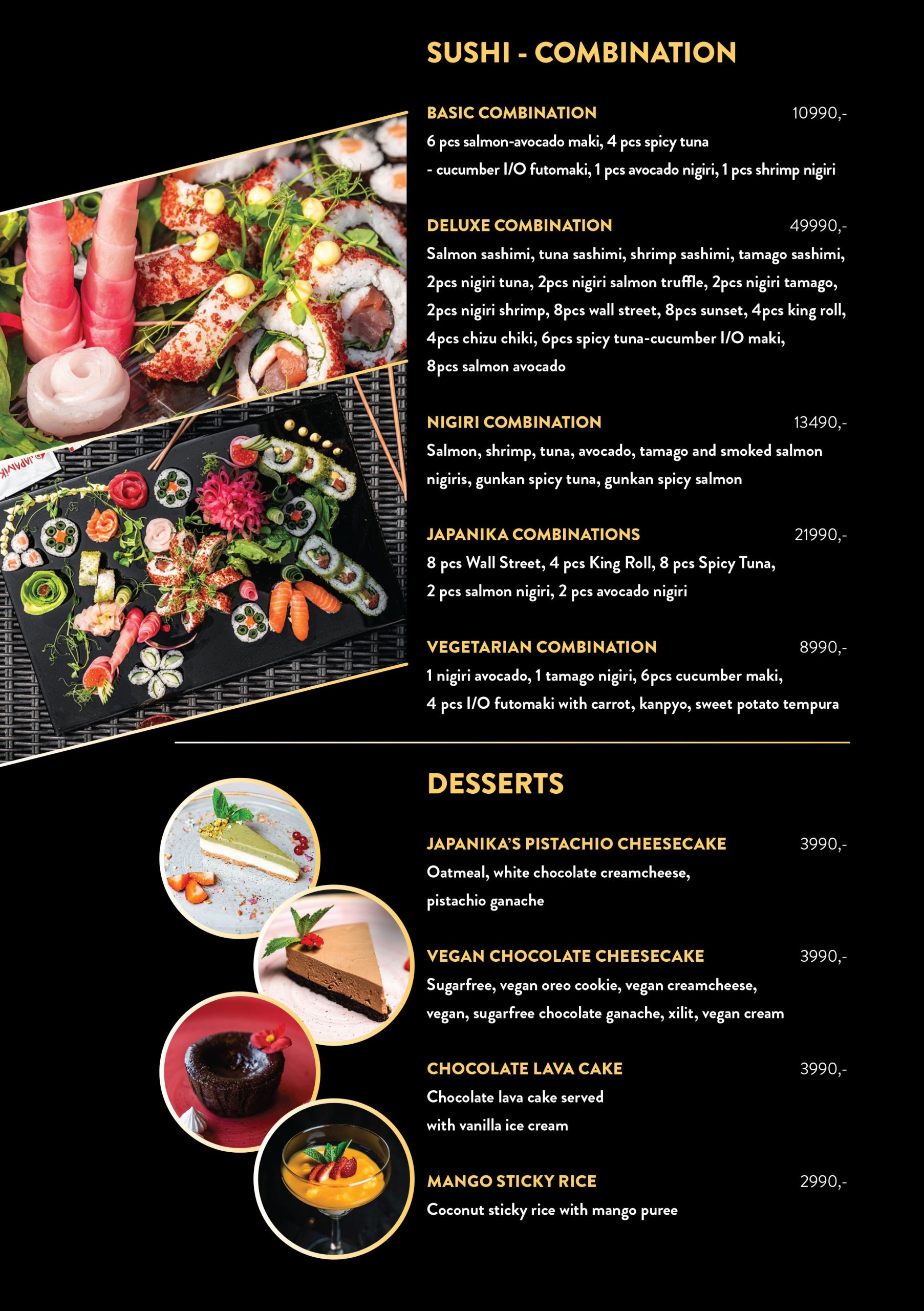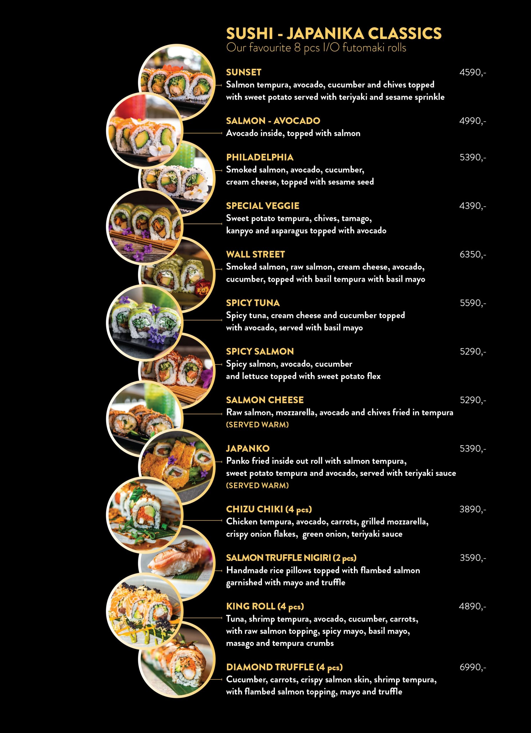 Our carefully crafted sushi variations, silky soups, smoky wok dishes, crispy tempura, special grilled dishes and heavenly desserts are await to amaze you.